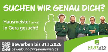 Die Wohngenossenschaft "Neuer Weg" eG sucht zum nächstmöglichen Zeitpunkt einen handwerklich begabten Mitarbeiter (m/w/d) zur Verstärkung des Hausmeister-Teams.