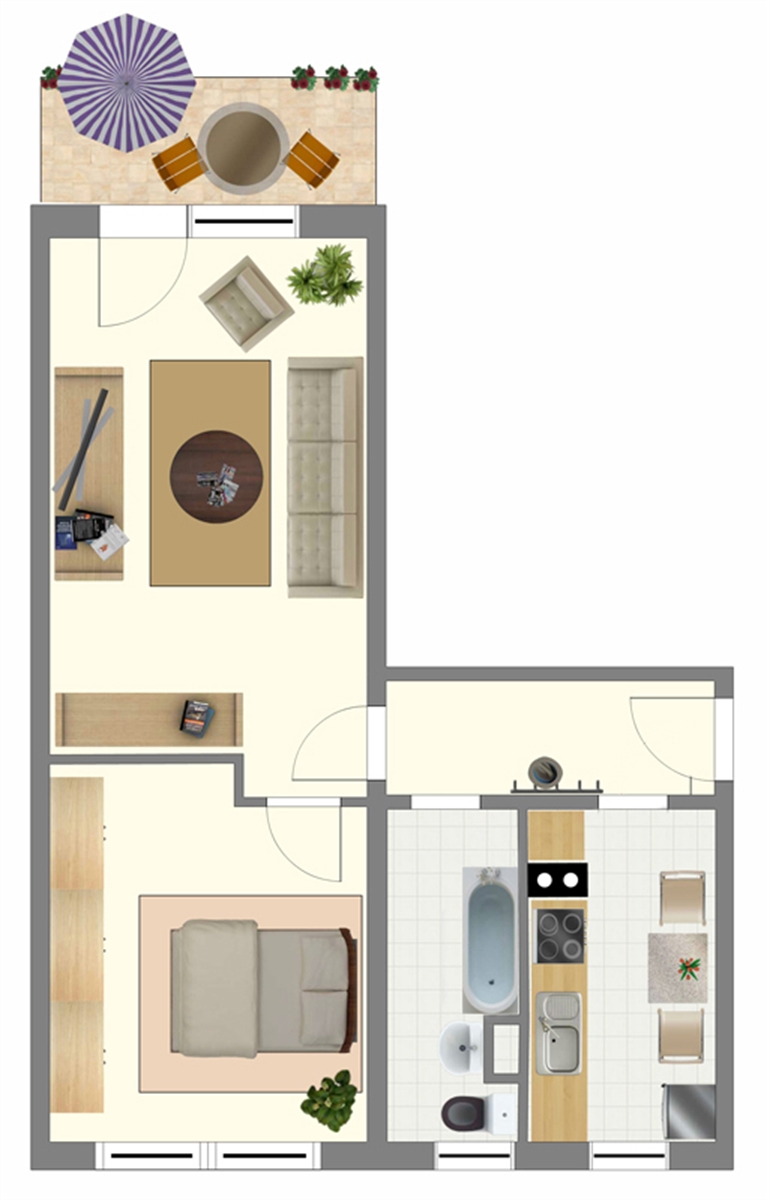 In dem 4-geschossigen, sanierten Gebäude befinden sich verschiedene Wohnungstypen. Durch Zusammenlegung entstanden moderne 1- bis 3-Raum-Wohnungen. Diese bieten Platz für Singles, Studenten und Familien.