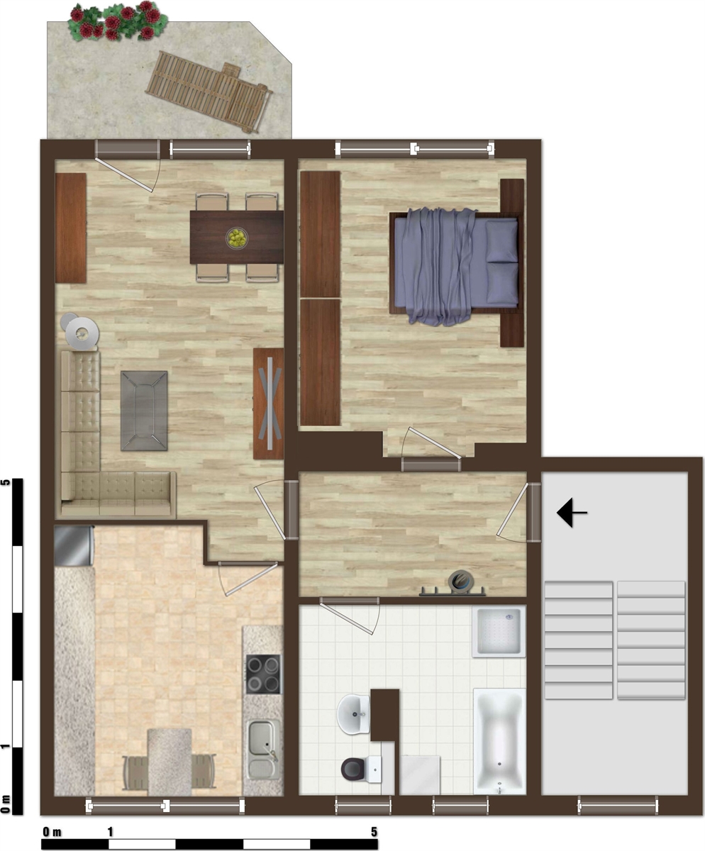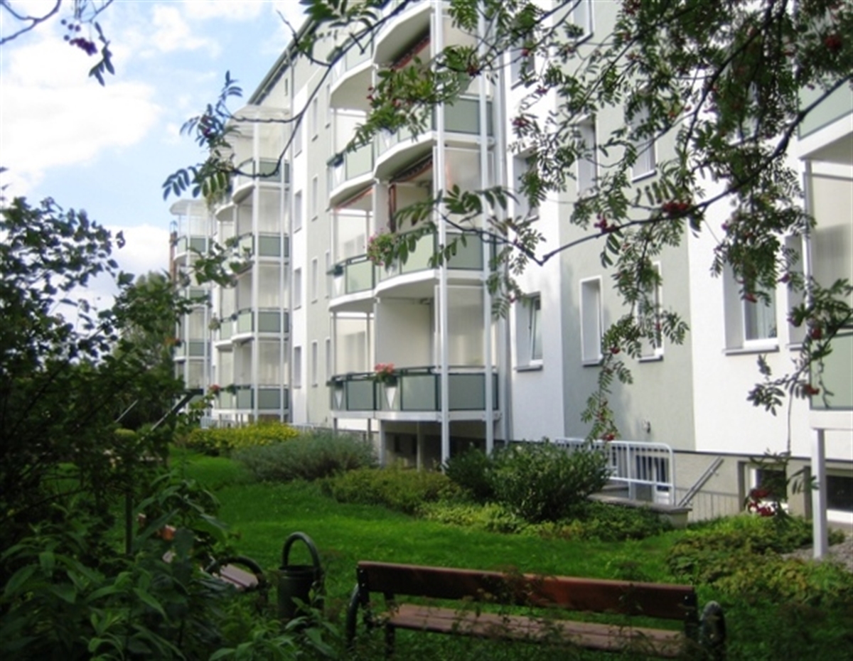 In dem 4-geschossigen, sanierten Gebäude befinden sich verschiedene Wohnungstypen. Durch Zusammenlegung entstanden moderne 2- bis 3-Raum-Wohnungen bis hin zur 4-Raum-Wohnung mit zwei Bädern und zwei Balkons. Diese bieten Platz für Singles, Studenten und Familien.