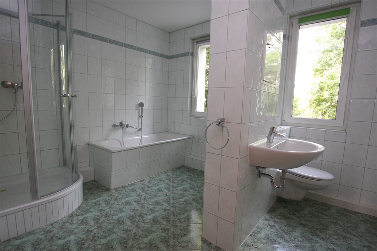 - großes, helles Bad mit Fenstern, Wanne,