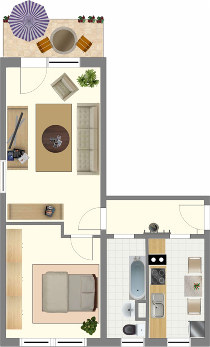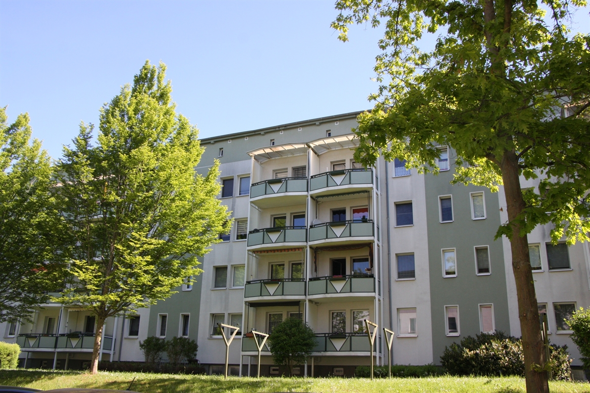 In dem 4-geschossigen, sanierten Gebäude befinden sich verschiedene Wohnungstypen. Durch Zusammenlegung entstanden moderne 2- bis 3-Raum-Wohnungen bis hin zur 4-Raum-Wohnung mit zwei Bädern und zwei Balkons. Diese bieten Platz für Singles, Studenten und Familien.