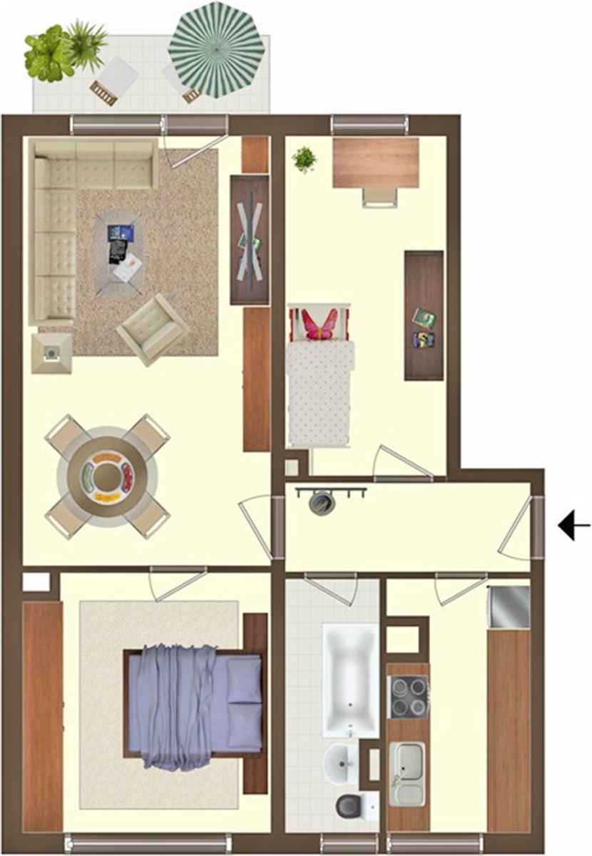 Das Haus ist umgeben von Grünflächen mit einigen Sitzgelegenheiten und einem liebevoll gestalteten, kleinen Spielplatz. Fußläufig sind Einrichtungen wie Schule, Ärzte und Geschäfte des täglichen Bedarfes erreichbar.